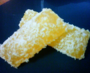 戻ってきました~! 残念ながら 今回は お見合いが成立せず・・・(T_T) また 頑張ればいいさ! でもって わたくしがいただいたお土産ですが それは こちら↓ Petha(ペタ) ※いつものように背景にピントが合っているのはご愛敬・・・ お初にお目にかかります 黄色の半透明な物体にココナッツファインがまぶされています 半分に切ってみましたが よくわかりませんね・・・ 噛むと 「シャクッ!!」っとした歯応えと お約束どおりに 「激甘ぁ~~~~~い!!!」 味はパイナップルみたいなんですけどね 電話で 「なにでできてるの?」と聞いてみると これまたお約束の 「え~と・・・ わからないよ ディディ(姉さん)~」 そうですね 聞いた私が悪かった・・・ 自分で調べます ハイ そもそも インド料理のコックとお菓子職人というのは 全く別の仕事であり 接点と云うものは ないんだそう・・・ なので 聞いてもわからないことのが多いです ※でも オーナーが日本にきたばかりの頃の六本木Mには インドのお菓子職人も雇われていたらしい (30年くらい前のこと) さすが老舗・・・そんな時代があったんだねぇ~ 実に優雅な話です で 「Petha ペタ」ですが どうやら 日本の「冬瓜 トウガン」のことみたいですね http://aseanbio.net/aphnet/thesaurus/winter%20melon.htm 云われてみれば この食感 冬瓜かも~ 冬瓜に じゃりっとするほど砂糖をしみ込ませたら こんな風になるかも しみ込ませないけどね 日本ではね・・・ 間違って しみ込むこともないですよ 絶対にね (^_^;) でも お菓子として これはこれで ありですな 激甘なんだけど さわやかっぽいから (注→ミルク・バターたっぷり&フライものの 他のインド菓子と比べると) とはいえ 日本ではねぇ う~ん (-_-) なかなか入手困難かと思われます この 生っぽい感じがね 流通には不向きでしょう 1度は試してみていただきたいんですけどね~