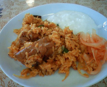 ↓ って たいして更新もしてないくせに えらそうで なんなんですけどね (^_^;) ずっと休んでるようなもんだろ! と云うご意見ごもっとも 甘受いたします ほな お店でお目にかかれる日をば~~ (^O^)/~~~ PR 人事異動で本店からやってきた コックH氏が作った 「チキンビリヤニ・ハイデラバーディ」→激ウマ~!! ハイデラバーディ とは ハイデラバード風 ということでして 要するに 「すっごく辛いですよ」 ということなんですね 大雑把に云うと インドの真ん中あたりにある 都市の名前です ここの料理って ほんとに みんな辛いんでしょうか?? おもしろいですね インドも広いので 地方ごとに味の特色ってものがあるそうで 「グジャラートのカレーは甘い(砂糖の甘さってことね!)」 とか 地域性がいろいろあるらしいです で 肝心の辛さ ですけど う~ん まぁ 辛いのかな~? (^_^;) ディディは すでに重症なのでね このくらいじゃ 正直 辛いかどうか わかんないんです せっかく びっくりさせようとしてるのに ごめんよ・・・(T_T)