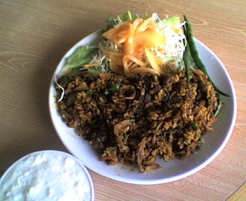 × [PR]上記の広告は3ヶ月以上新規記事投稿のないブログに表示されています。新しい記事を書く事で広告が消えます。 マトン・ビリヤニ&ヨーグルト コックBが 「今日 一緒に病院行って~」というので 「マトン・ビリヤニを作ってくれるのなら 行こうじゃないか!」 と交換条件で Get しました♪ 大好きなのさ~♪ マトン・ビリヤニ 羊のカレーで作る ピラフのようなものです (本式の作り方は いろいろと 複雑だったりするようですが あえて炒飯スタイルです) で ヨーグルト と合うんですよ~ これが! なので ヨーグルトをかけて食べてると コックBが 自分のビリヤニを持って登場し 「インドでは チキンとヨーグルト マトンとヨーグルト 一緒一緒 ダメね~」 と おっしゃる でた!! お説教ですね! 消化にあまり良くないということらしい とにかく Danger なんですと でもさ じゃ キミが かけてる その白いのは何??? ヨーグルトじゃありませんこと?? (-_-;) まったく これだから ほんとに・・・ 説得力がないっつうの!! わけがわかりません (>_<) PR