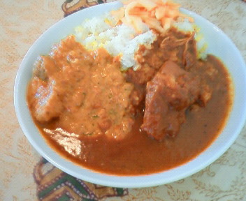 今回は「虎豆」を持ち込みましたよ~ ちなみに虎豆は→http://store.shopping.yahoo.co.jp/kidney/tora500ml.html 「君たち こんなの見たことある?」って云う恒例のあれですね もしかして みんな いい加減うんざり気味? (^_^;) 気にせず行きます!! 「ほ~ら やっぱり初めてだ!かわいい豆でしょ?」 というわけで コックB氏が 作ってくれました 虎豆のダール いつも 感心するのが インド人の豆の扱いの上手さ よくこんなに 絶妙な火の通し加減ができるな~って思うんですよ 虎豆って初めて食べたかもしれない・・・ 食感は ホクホクのジャガイモみたい!! くせがなくって ほんとに美味♪ 甘い豆って ちょい苦手なのですが カレーはやっぱり最高です 次は何を持ち込もうかな?? |