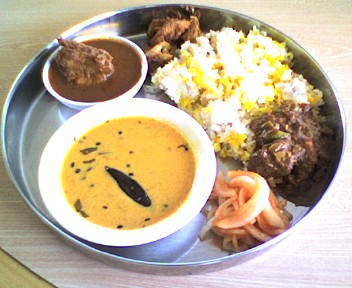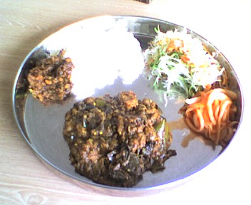 × [PR]上記の広告は3ヶ月以上新規記事投稿のないブログに表示されています。新しい記事を書く事で広告が消えます。 最近の我が家で 1番のヘビー・ローテーションCD がこれ! 「オーム・シャンティ・オーム」 インド映画のサントラ盤なんですね~ いや~いいもん買いました と 自画自賛 ☆の王子さんも 気に入って 踊ったりとかしてますし A^_^;) ちなみに こういうものは こちら で購入 驚異の迅速対応 ですよ ビバ!ネットショッピング♪ インド音楽も慣れると それはそれで 味わい深いです (^J^) PR ヨーグルトカレー&マトン&チキン ヨーグルトカレーは 初登場のコックC氏 特製です ちょっと めずらしいかな? 日本では すっぱくて 辛くて ほとんど具なし (きゅうり!!の細切りがちょこっと入ってた) ※真ん中の黒いのは唐辛子です 今日 火曜日は インドの神様 「ハヌマン」の日 肉は食べないのが習慣みたいです 私は C氏は このカレーとご飯のみ 日本で云うと「お茶漬け」みたいだよ! しゃばしゃばで~ ハヌマンは 顔が「お猿」 体が人間 の神様で 独身男子です おまけに すっごい力持ちで 薬草を取ってくるために 山まるごと1個を手のひらに乗っけて 運んでくる みたいな・・・ なので 男子の神様ってことで インドの男子は日中のみ 断食をしたりもするらしいです でも インドでは 全員が同じってことは ありえないので 「そういう人もいる」ってことだと思いますけどね コックのみんなも もちろん食べてるし